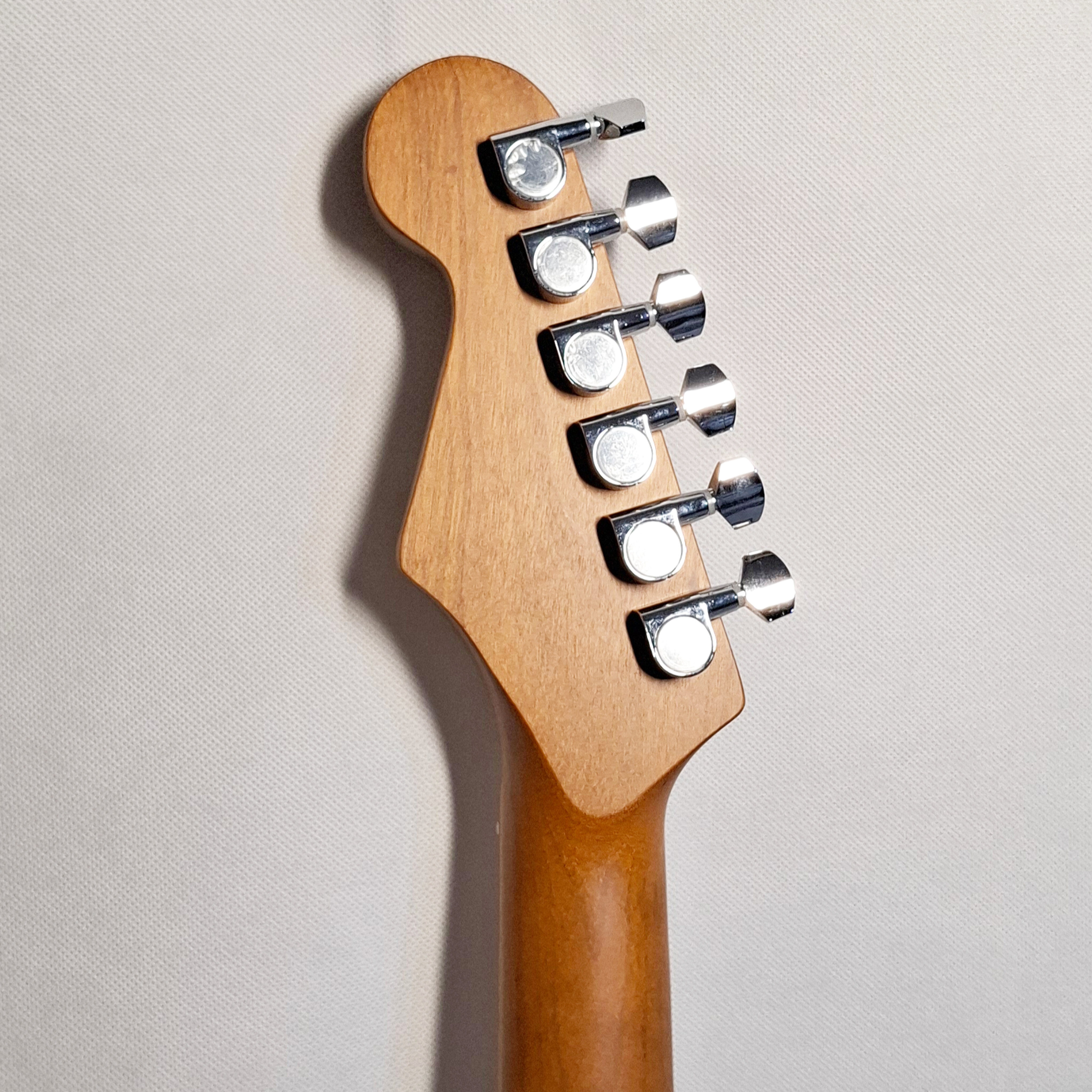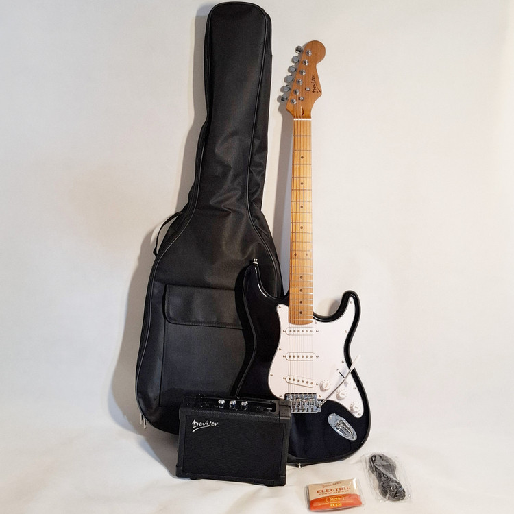 لوازم جانبی: امپ ۱۵وات،کابل ۵متری،یک دست کامل سیم،۳ عدد پیک ۰.۴،بند گیتار برند Fender